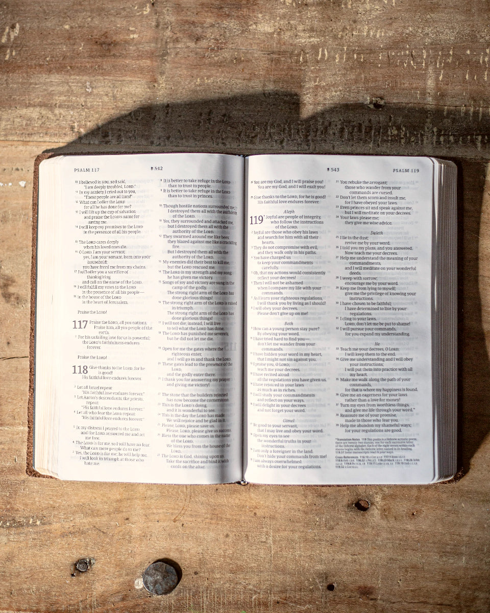 The Word of God is something that we value deeply here at Narrow Gate. Because of this, we knew in creating our Handbound Leather Bible that it was to be carefully crafted with the absolute best we have to offer. Our full-grain leather has been hand-selected for Bible-covering and each Bible is constructed by the hands of our artisans, using Smyth-sewn pages to ensure durability and longevity for years to come. Our authentic bovine hides ensure that each Bible is truly unique as every hide will have variations in both texture and color based on where from the hide it is cut.
