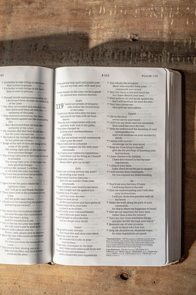 Texture variability may occur, some a bit more smooth and others with a slight pebble-look. We celebrate this variation as it makes each Bible perfectly unique!